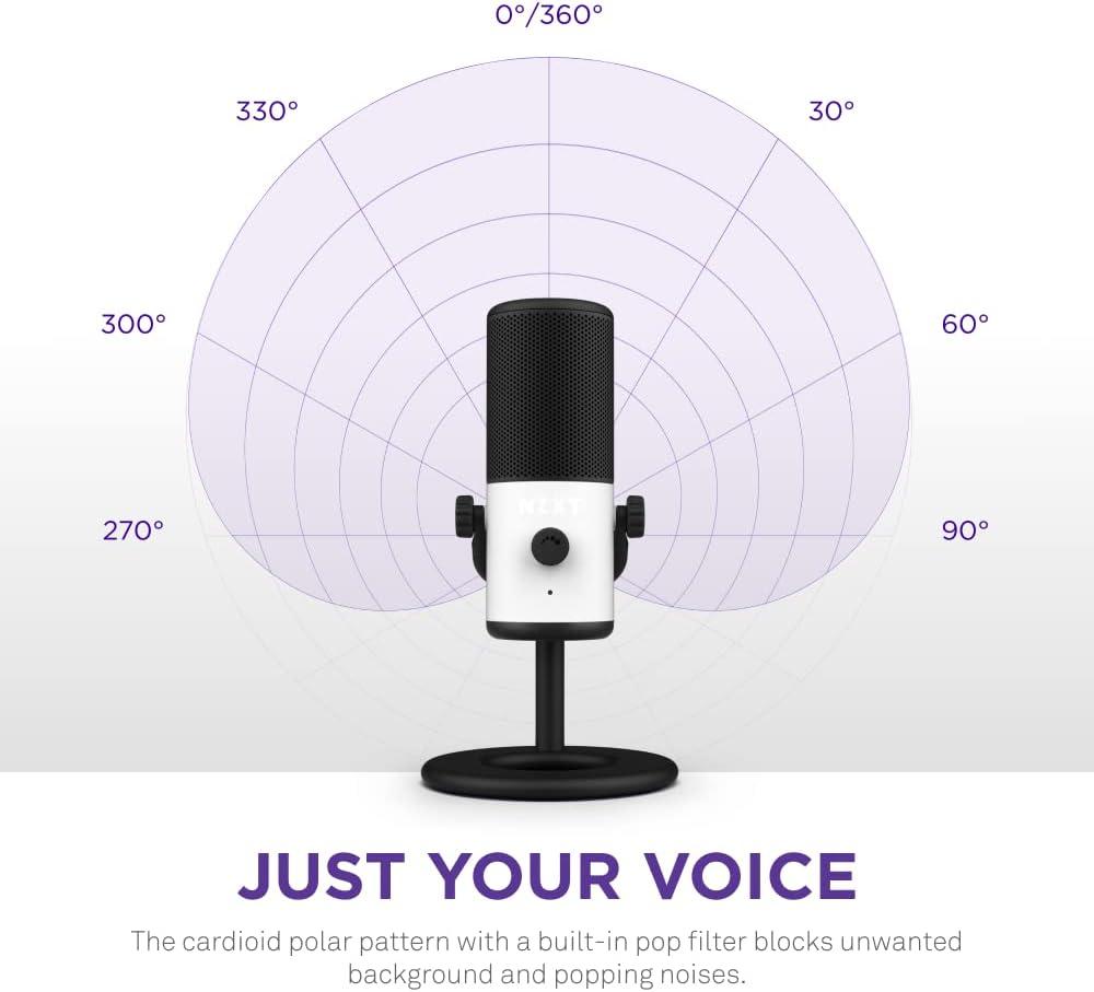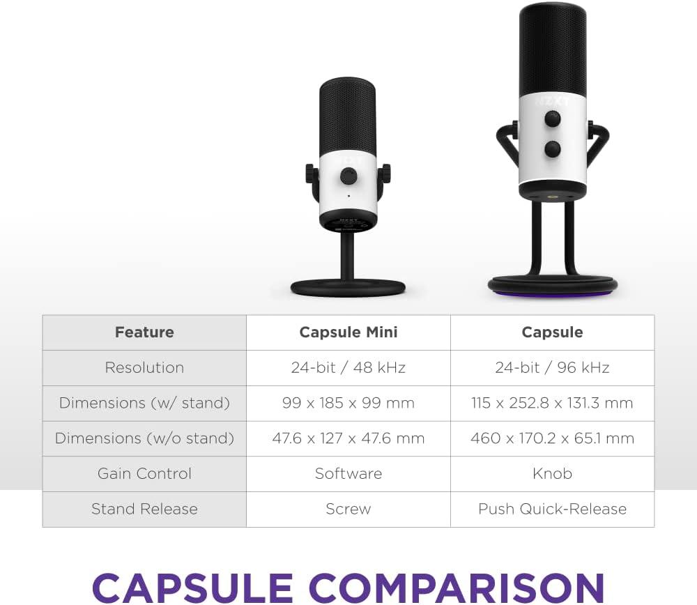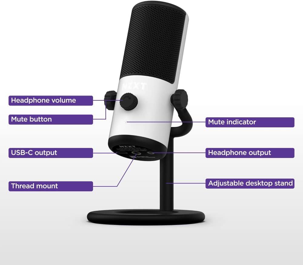 NZXT Capsule Mini – AP-WMMIC-B1 – USB Microphone – High Resolution – Cardioid Polar Pattern – Ideal for Streaming, Content Creation & Podcasting – Built-in Pop Filter – Adjustable Stand – Black(White)