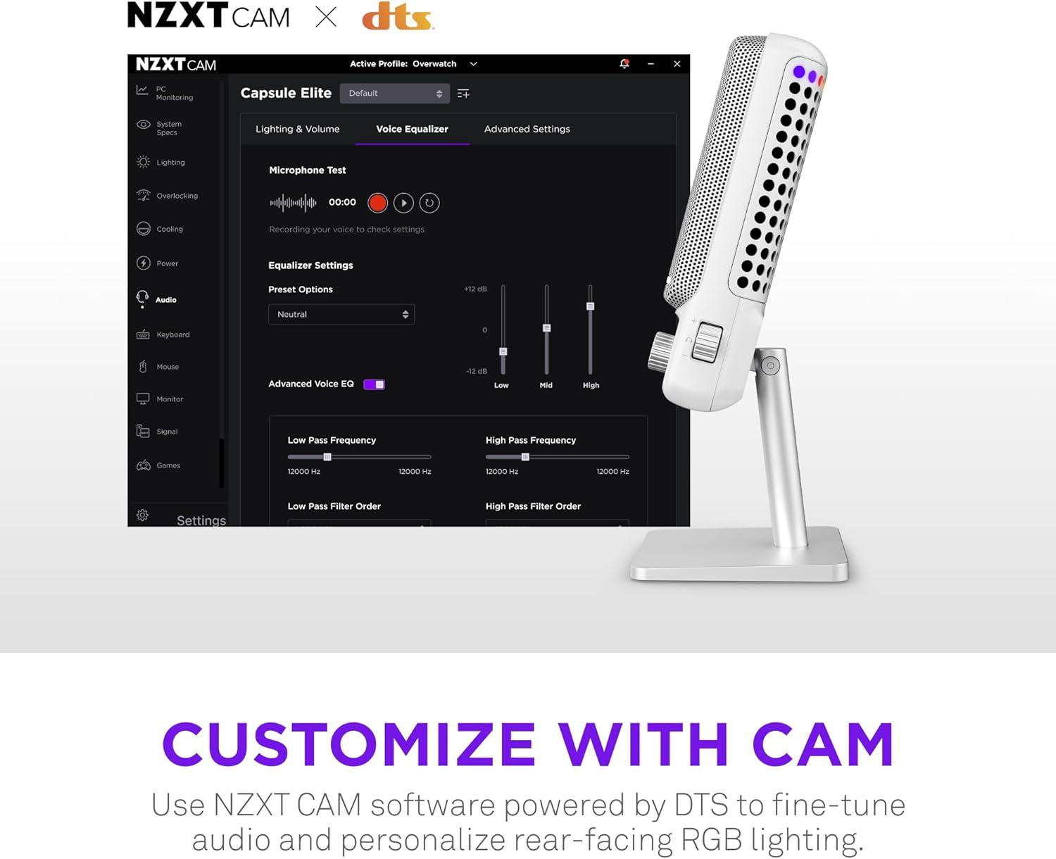 CUSTOM TUNING: Configure audio settings like volume mixing and mic monitoring with NZXT CAM software.