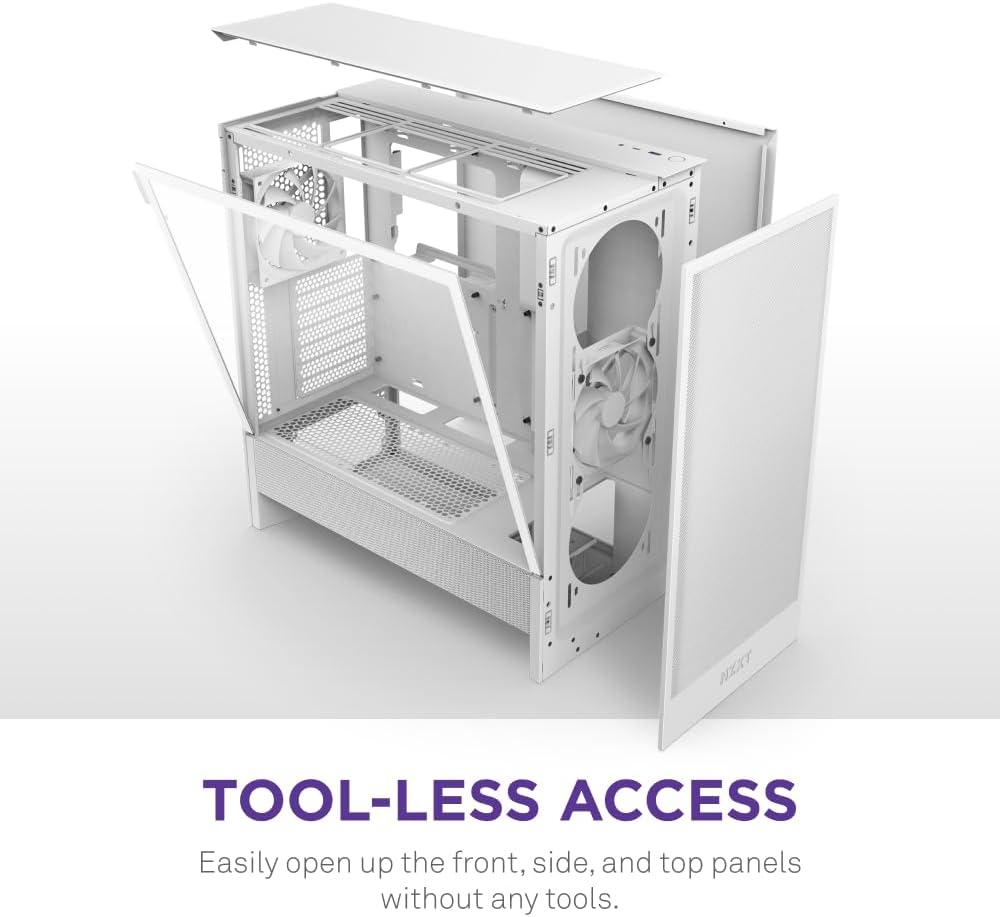 NZXT H5 Flow RGB 2024 – Compact ATX Mid-Tower PC Gaming Case – High Airflow – F360 RGB Core (CV) Included – 360mm Front & 240mm Top Radiator Support – Cable Management – Tempered Glass – White(White)