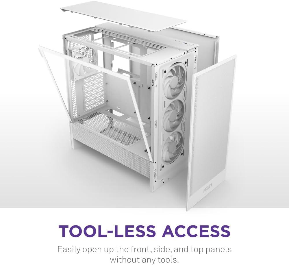 The H5 Flow CC-H52FW-R1 boosts airflow and GPU cooling with its perforated PSU shroud, mesh panels, and large radiator support—all in a compact mid-tower form factor.