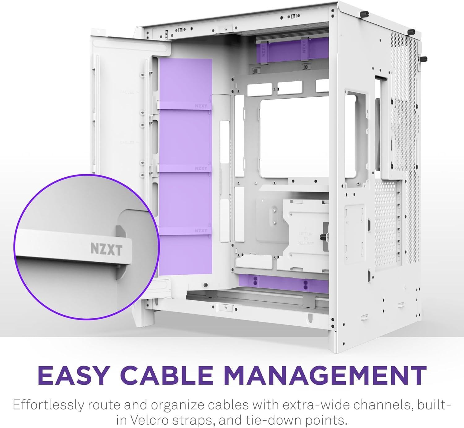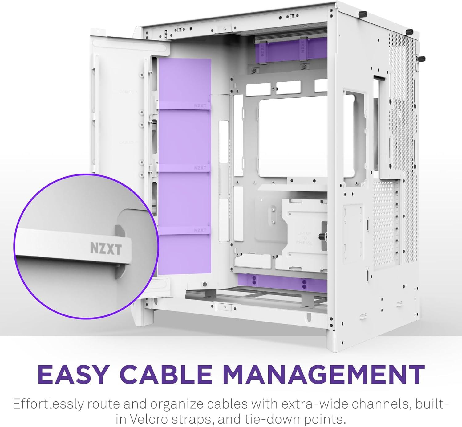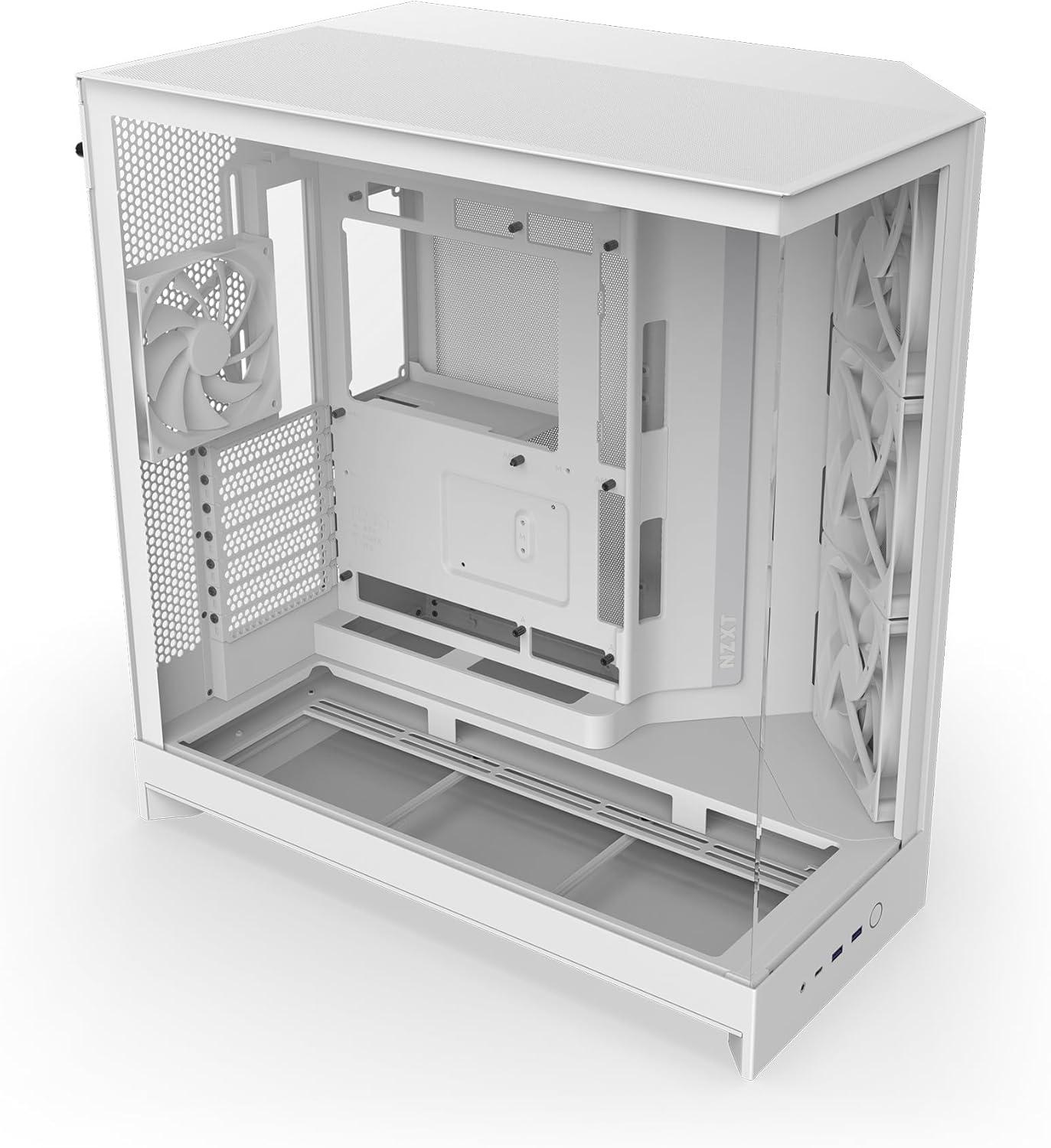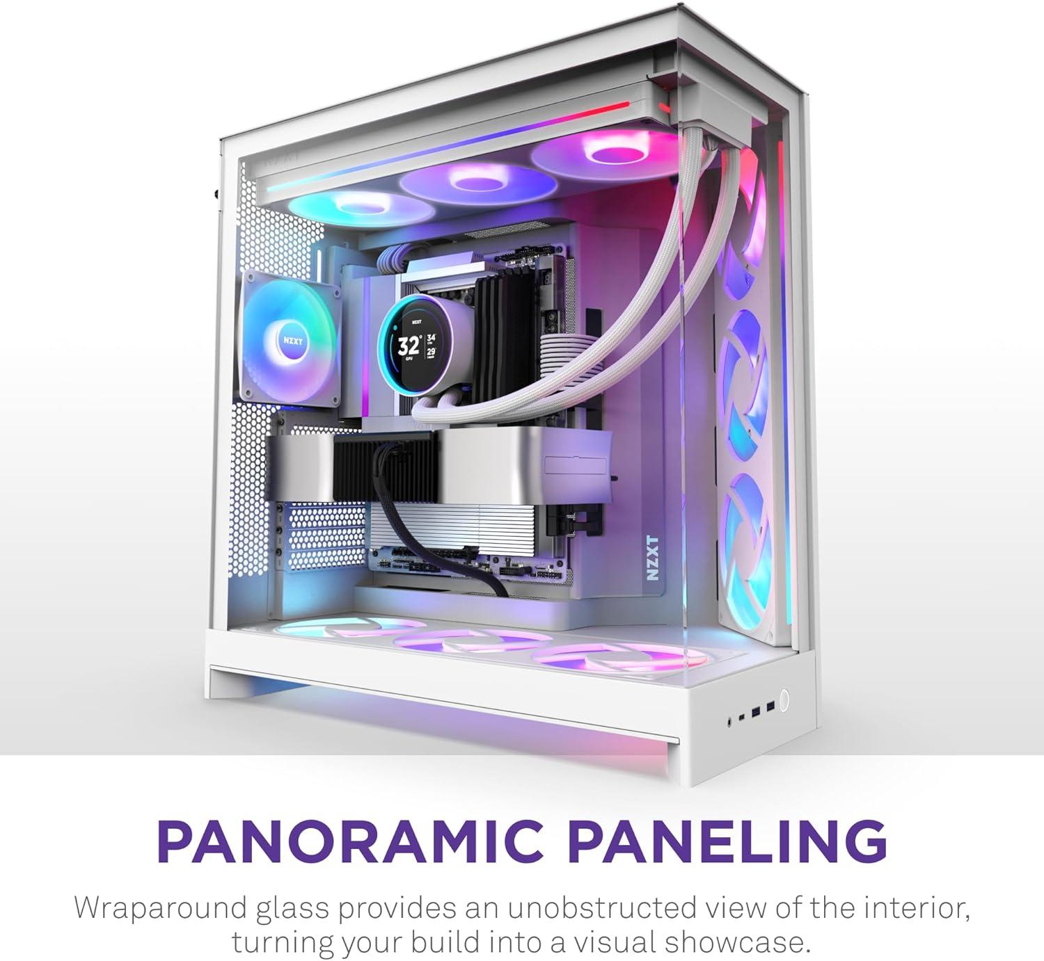 NZXT H9 Flow RGB+ (2025) – Large Dual-Chamber ATX Mid-Tower Airflow PC Case – Includes 7 RGB Fans (6 x 140mm, 1 x 120mm) & Control Hub – 420mm Radiator Support – Back-Connect Ready – Black(White)