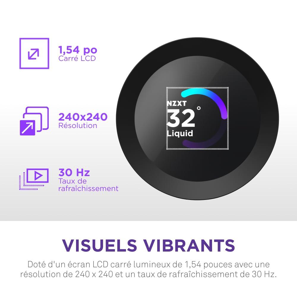 CUSTOM LCD SCREEN — Display real-time system temps, animated GIFs, custom images, or web integrations like Spotify and YouTube on a bright 1.54″ square LCD — fully customizable through NZXT CAM software.