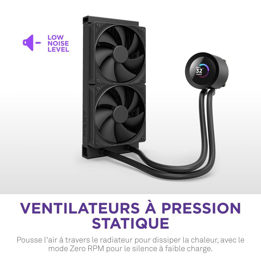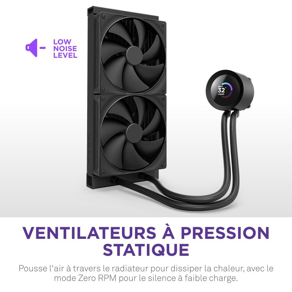 Kraken Plus (RL-KR240-W2) delivers powerful cooling with the custom NZXT Turbine pump and high-performance fans. A vibrant 1.54″ square LCD lets you personalize your build with real-time system stats, custom images, or animated GIFs. Installation is fast and clean with pre-applied thermal paste and a single breakout cable from the pump cap.