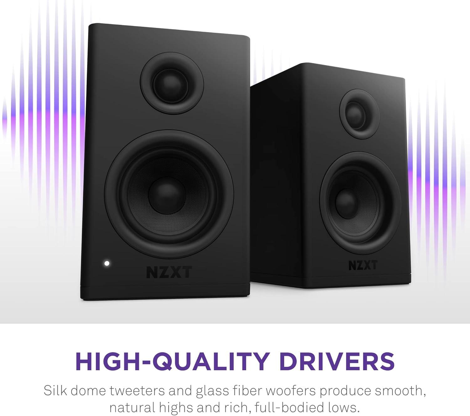 NZXT Relay PC Gaming Desktop Speakers – Bookshelf-Style Design – 80 Watts – High Dynamic Range – Silk Dome Tweeters – Glass Fiber Woofers – High-Quality MDF Construction – Black
